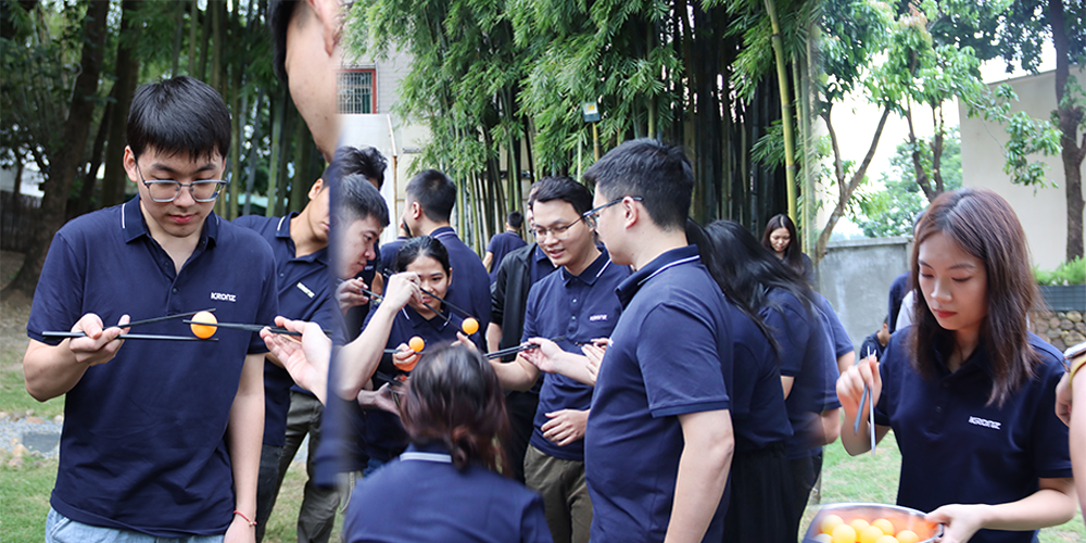 各队队员早已两两相对,排成长长的笔直队伍,每个人手里都捏着一双筷子,眼睛紧紧盯着前方的乒乓球。比赛一开始,第一棒队员小心翼翼夹起球,慢慢递向队友;可有人手一抖,球“嗒” 地掉在地上,立刻弯腰飞快捡起,重新调整姿势。后面的队友也赶紧放慢速度,轻声提醒:“稳点,不急!” 就这样,球在一双双筷子间慢慢传递,最终所有完成挑战的小队,都举着乒乓球的容器欢呼,团队协作的成就感在每个人脸上藏都藏不住。