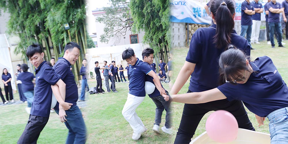 队员们两两结对,手臂相挽、腰背紧贴,快步挪向终点迈进。有组队员因步伐不一致导致气球掉落,身旁队友立刻喊“调整节奏,慢慢来”,有些组队员为了稳,走得像小企鹅一样,小碎步慢慢挪,草地都快被磨没了。有的力气大直接把队员直接拖走,逗得全场笑。
