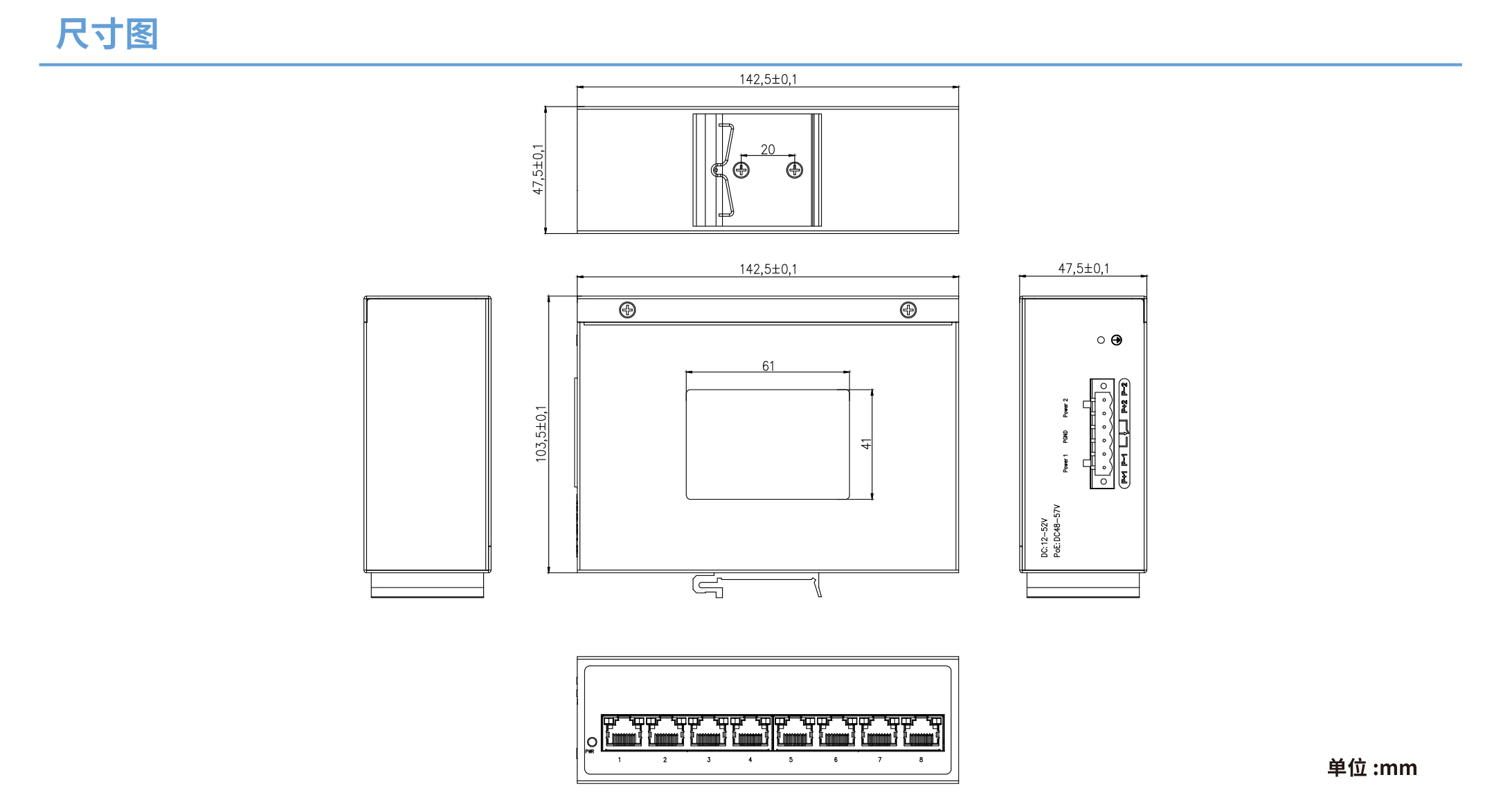接口 | 8 个RJ45 端口,10/100/1000BaseT(X)自动侦测,全/ 半双工MDI/MDI-X 自适应 |
