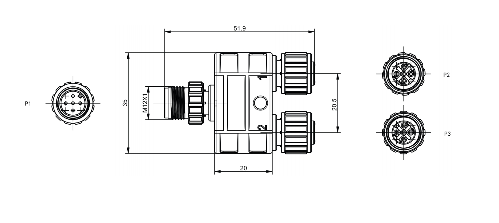 • 外形:M12 Y型 分支器